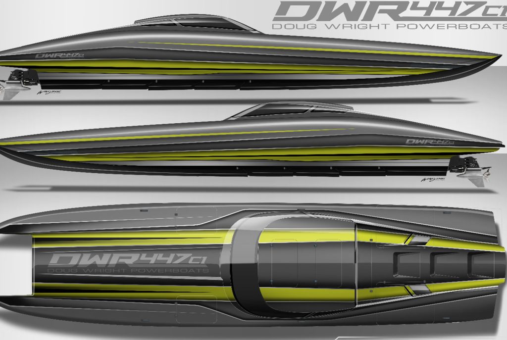 Wasting no time putting its recently added human capital—meaning director of racing Gary Stray and vice-president Andrew Imhof—to  fine use alongside renowned pleasure and racing catamaran designer Doug Wright, Sr., Doug Wright Powerboats/DWR has completed final CAD designs for the company’s first Class 1 catamaran. Tooling will be handled in house at the Melbourne, Fla., facility.